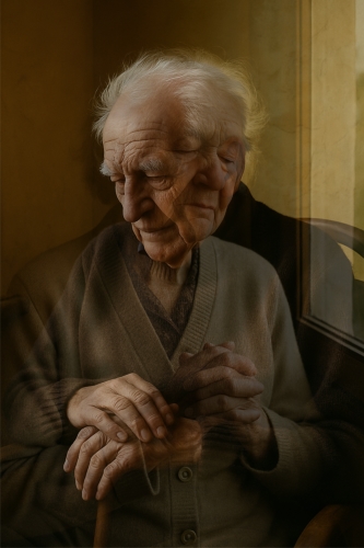 Fehér haját néha megtúrja a szél,