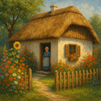 Apró nádfedeles házikó.